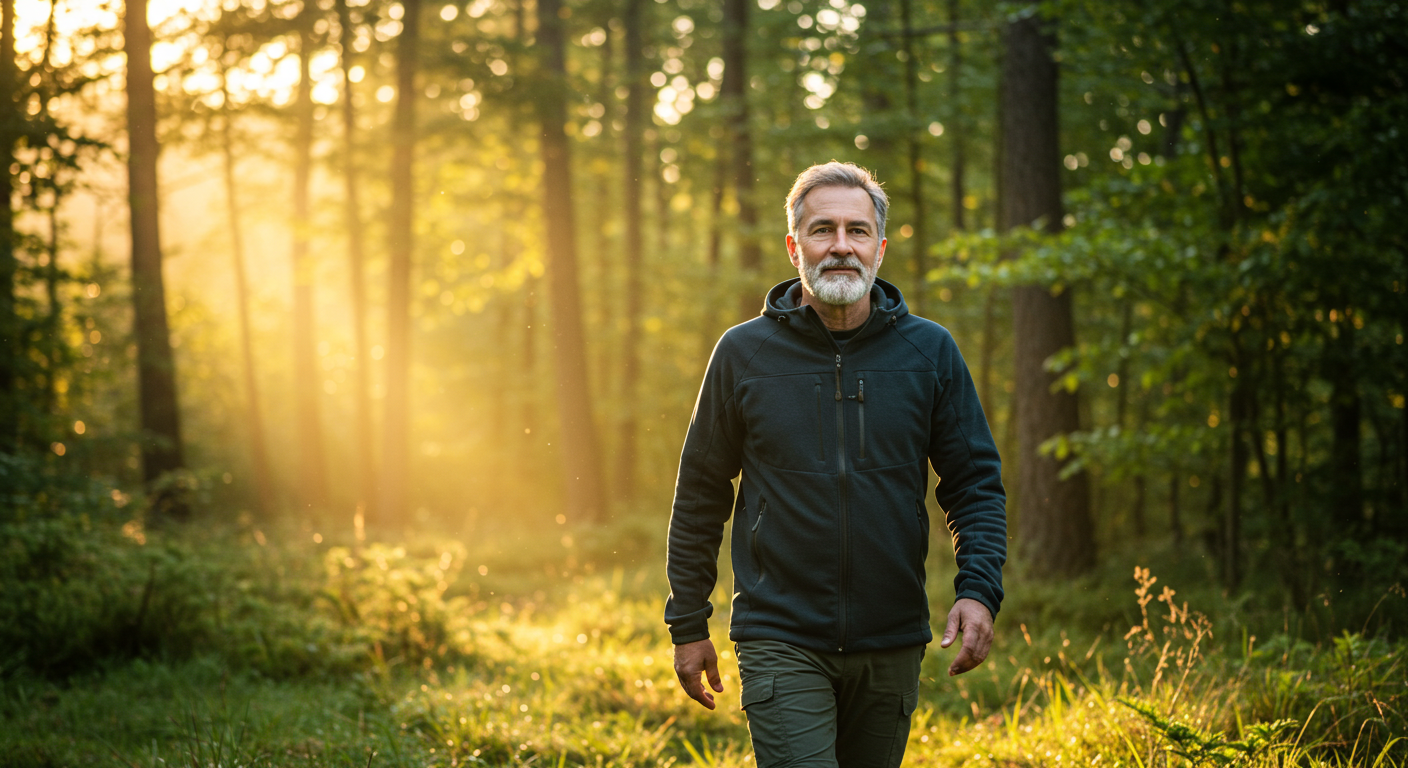 숲 속에서 걷는 중년 남성 – 해마를 키우는 유산소 운동