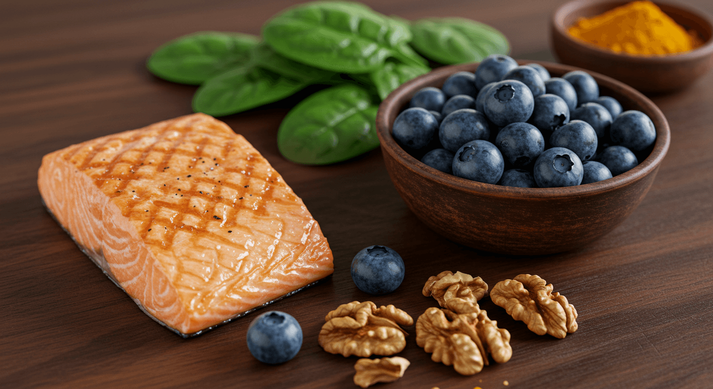 • 오메가3, 블루베리, 견과류, 녹황색 채소, 강황 등