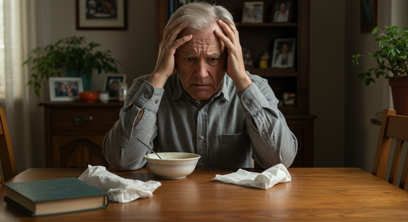 기억이 나지 않아 혼란스러워하는 노년 남성의 모습