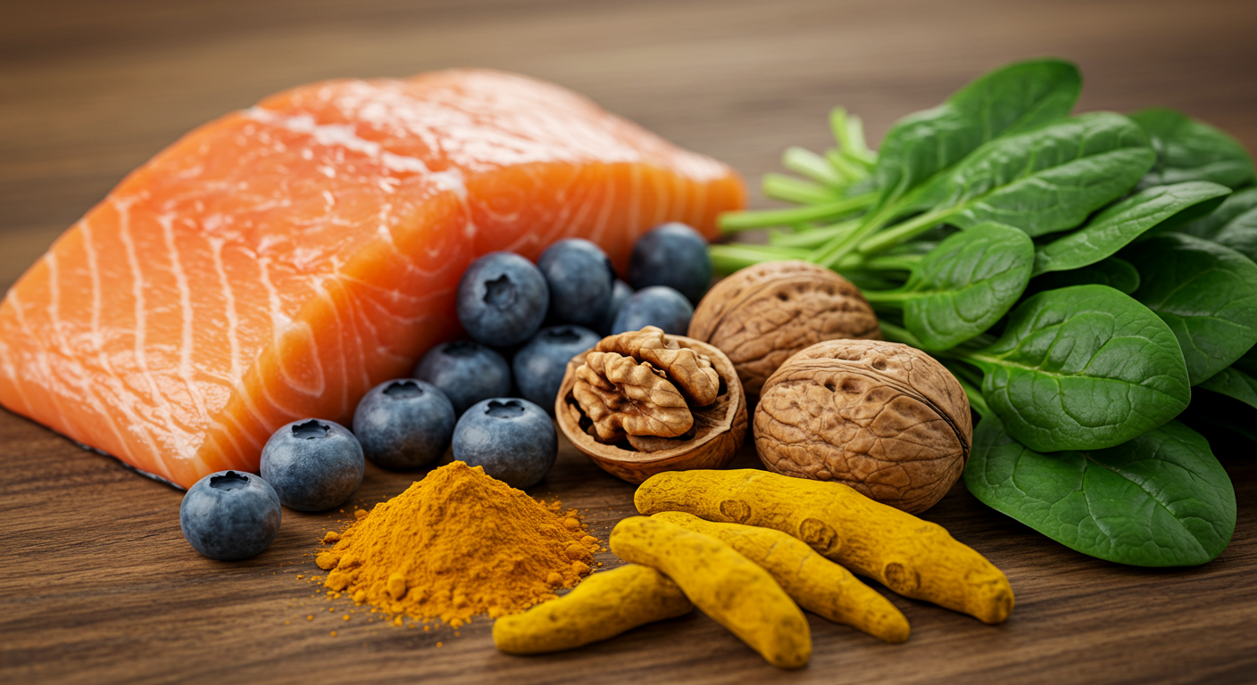 • 오메가3 (등푸른 생선), 블루베리, 강황, 견과류 등